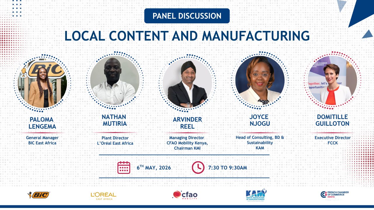 The French Chamber of Commerce in Kenya, in partnership with industry leaders, is pleased to host a Breakfast Panel Discussion on Local Content and Manufacturing in Kenya.
