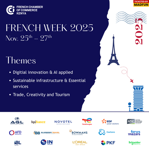 After the remarkable success of the second edition of French Week, which brought together over 600 participants, 70+ speakers, 15 high-level sessions, and 17 partners, we’re thrilled to be back with the 3rd edition! This year, join us for three vibrant days of dynamic discussions, engaging roundtables, practical workshops designed to spark new connections, strengthen business ties between France and Kenya, and unlock fresh opportunities for investors and enterprises.