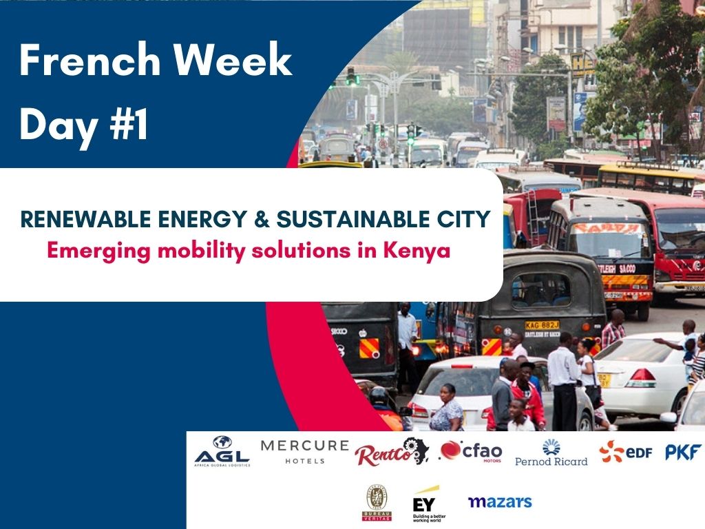 The French Chamber of Commerce is delighted to invite you to attend the first edition of French Week Nairobi. Join our expert speakers on day one as we discuss the future of urban and e-mobility in Kenya. We dive deep into the Emerging Mobility Solutions in Kenya.