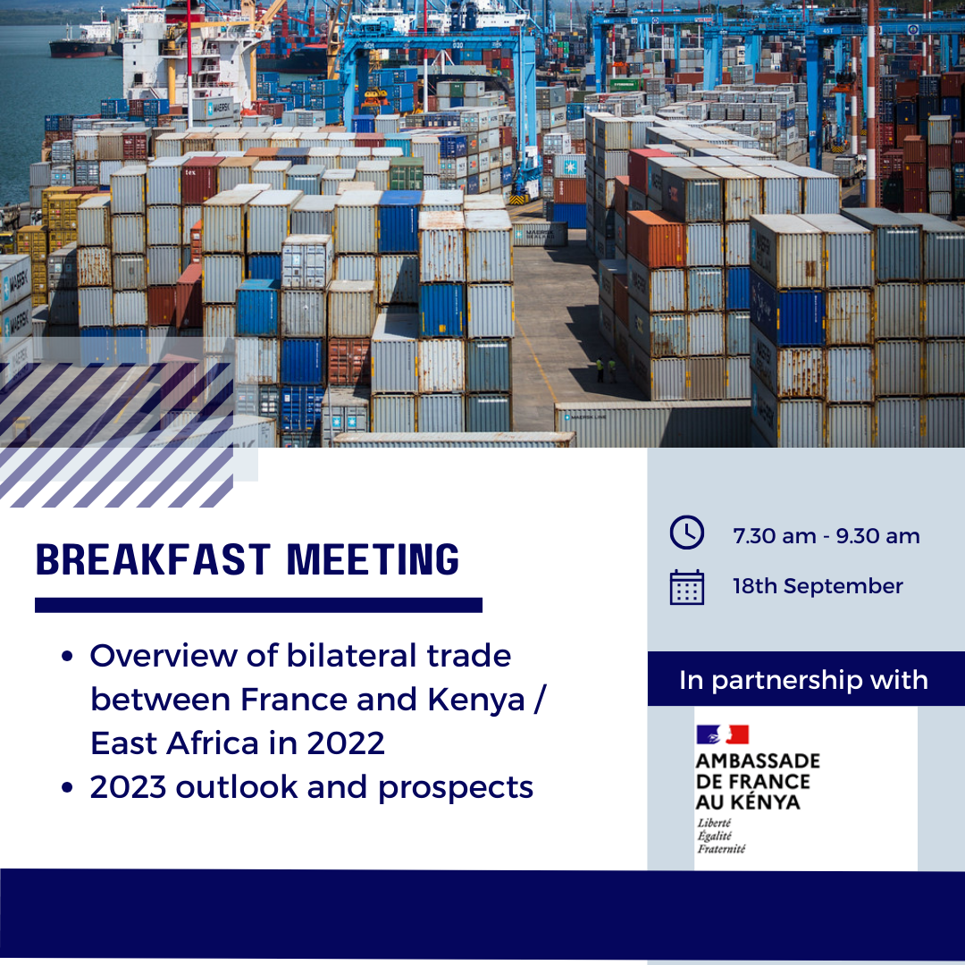 Join us for an insightful presentation to discuss bilateral trade between France and Kenya/East Africa in 2022 with our expert speakers from the French Regional Economic Department: