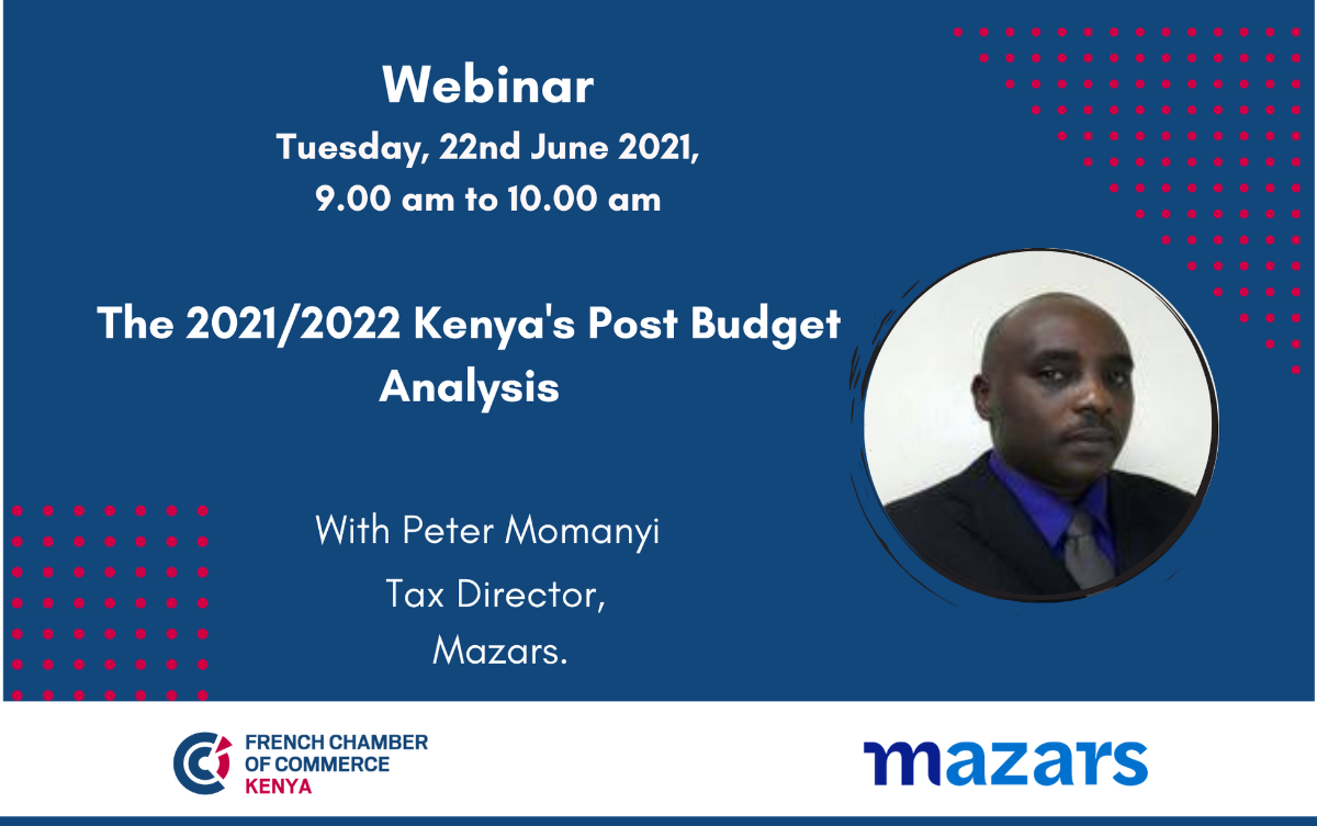 Join us to learn more on the implications of the proposed budget to your business in Kenya. The webinar will be led by Peter Momanyi, Tax Director, Mazars.