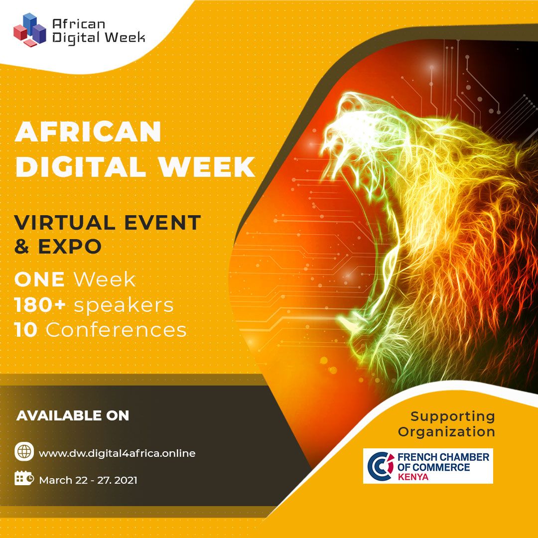 The French Chamber of Commerce Kenya in partnership with World Digital Weeks is pleased to invite you to the forthcoming African Digital Week Virtual Event & Expo 2021 set to take place from March 22nd to March 27th 2021.
