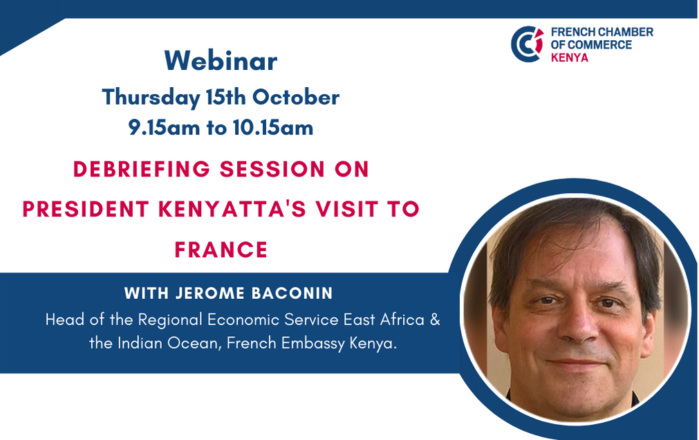 President Kenyatta went for a three day state visit to France last week and signed several bilateral agreements to boost economic ties between Kenya and France. During this webinar, Jérôme Baconin, Head of the Regional Economic Service East Africa & the Indian Ocean, French Embassy Kenya, will share insights on the outcomes of the presidential visit.