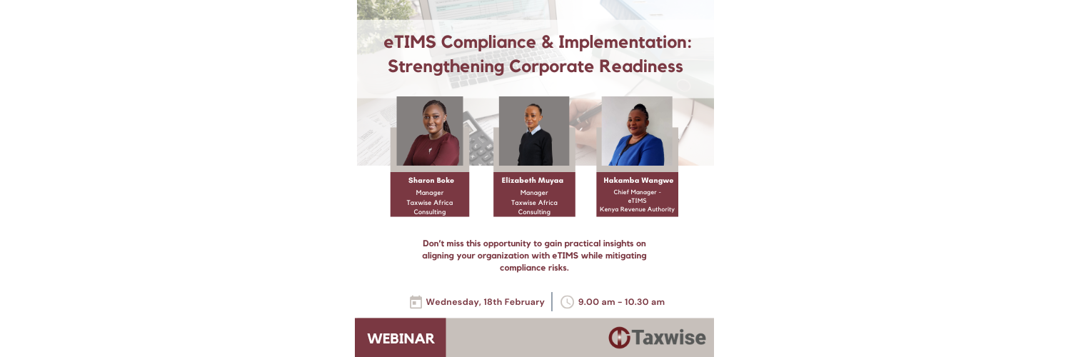 Join our insightful Webinar on eTIMS Compliance with Taxwise Africa Consulting on Wednesday, 18th of February 2026 from 9am to 10:30am