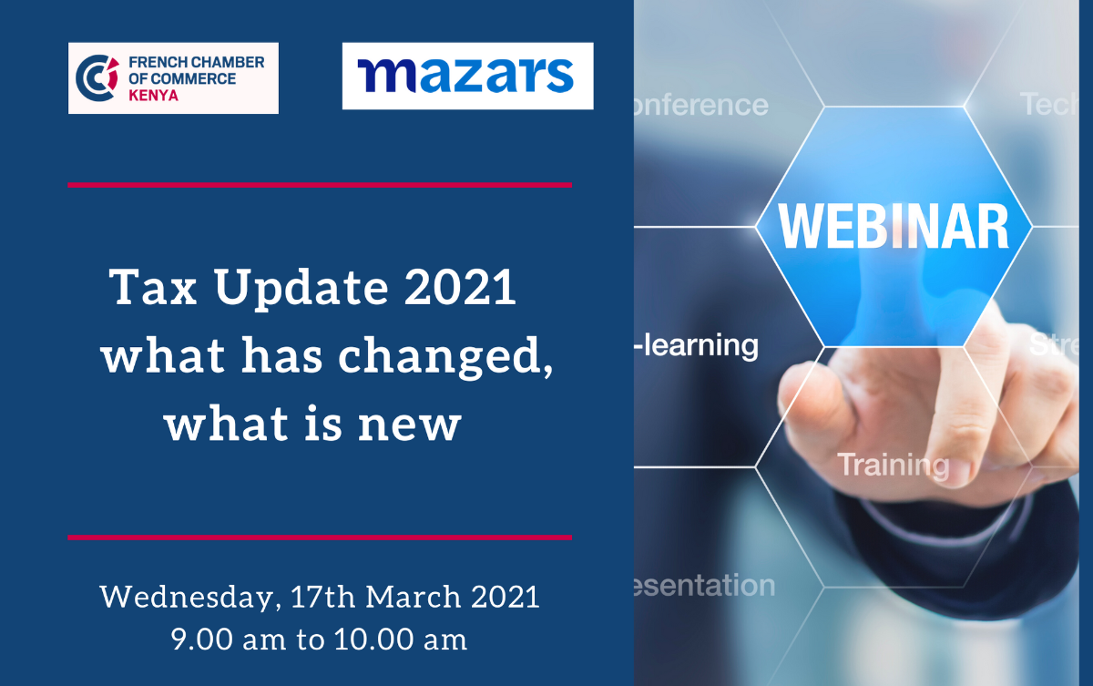 During the event Peter Momanyi, Tax Director at Mazars, will share insights on what has changed as well as the new requirements in regards to Tax in Kenya. Among the areas to be covered will be on the Newly introduced Digital Services Tax which is now part of the Kenyan Tax landscape.