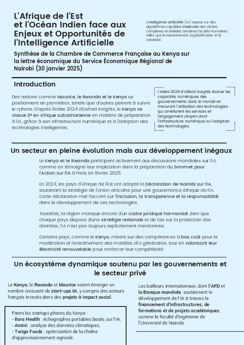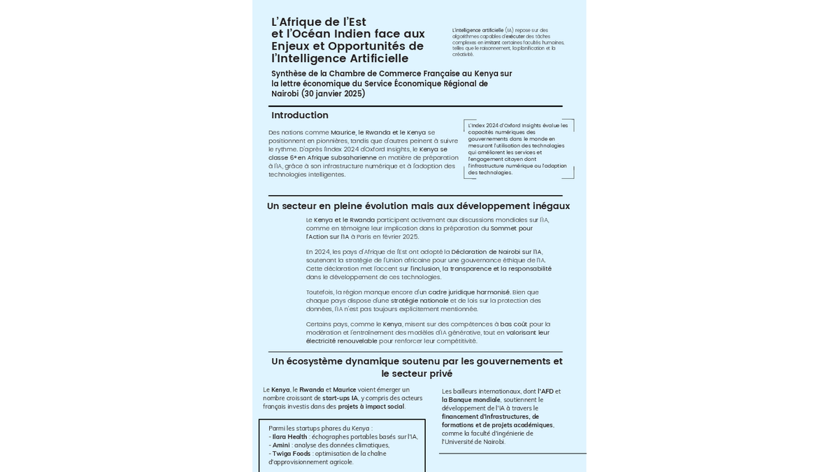 Synthèse de la Chambre de Commerce Française au Kenya sur la lettre économique du Service Économique Régional de Nairobi (30 janvier 2025)