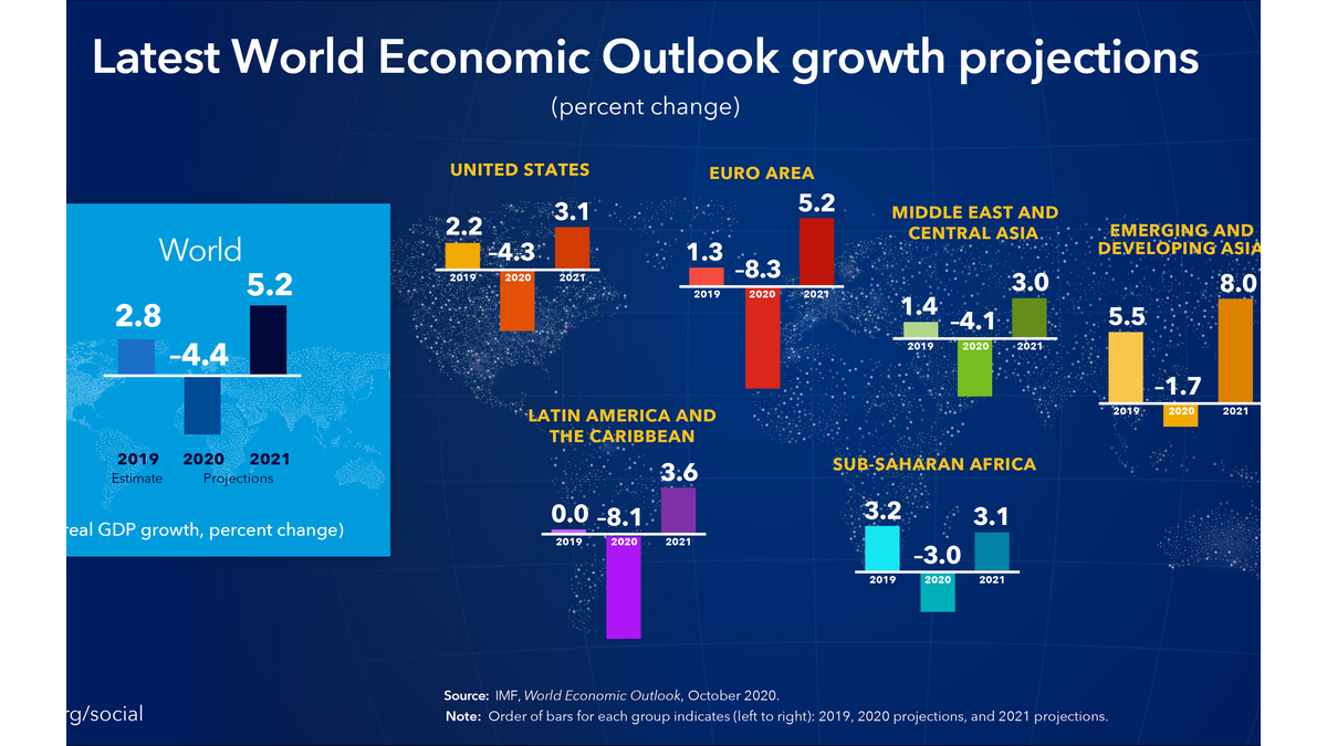 - Régional : Révisions des prévisions macroéconomiques du FMI dans le WEO d’octobre 2020