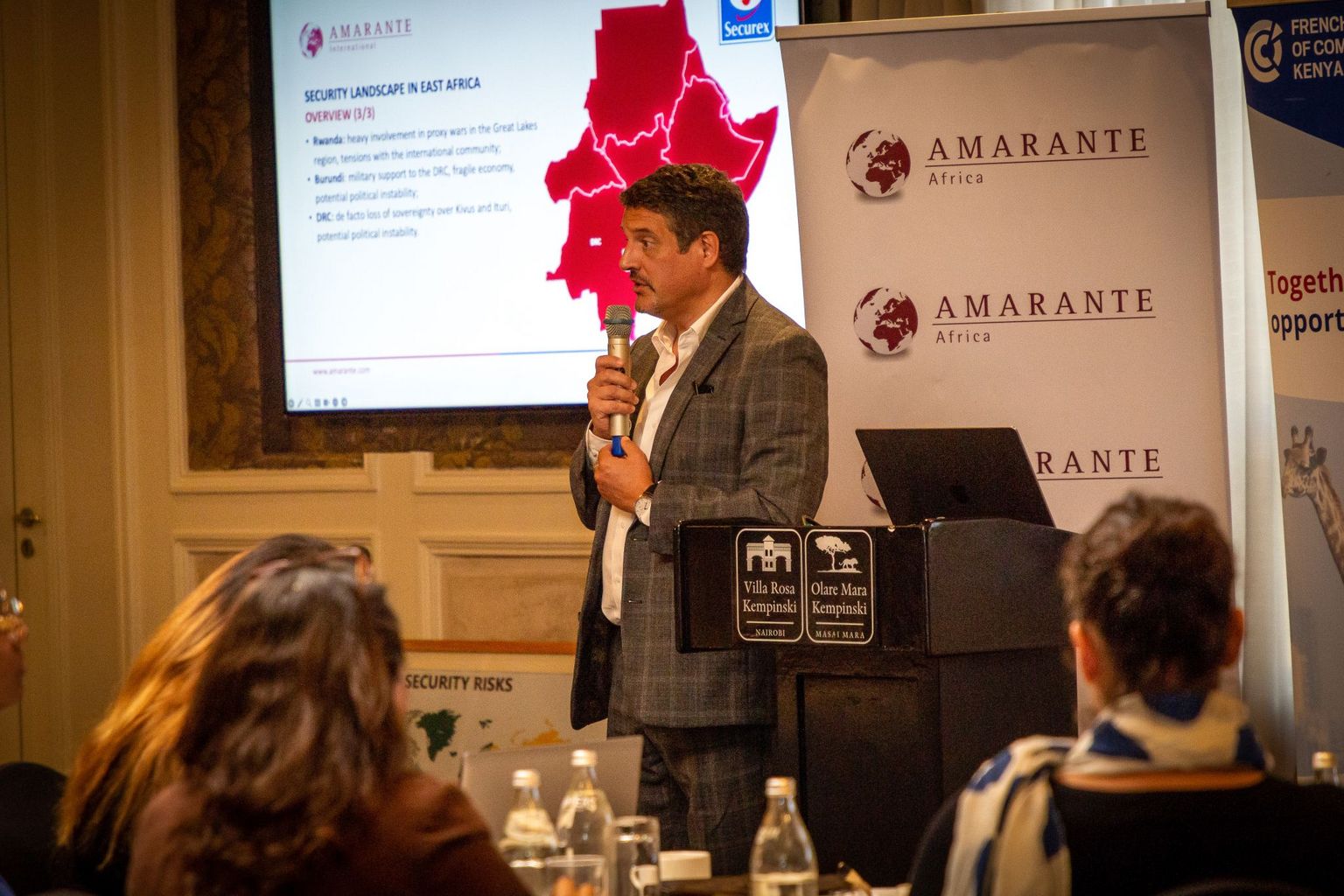 Kicked off by our Director, Laure Paugam, the session featured insights from Mohit Sahni , Managing Director Securex Agencies Ltd, Jérôme Pasinetti Senior Director of Africa at Amarante Africa and Boris Arnault, Project Manager E.A. at Amarante Africa, who shared expertise on navigating complex regional challenges.