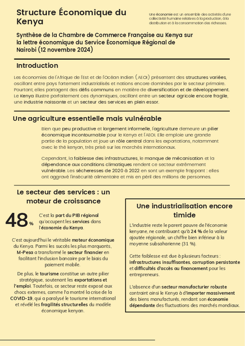 Synthèse de la Chambre de Commerce Française au Kenya sur la lettre économique du Service Économique Régional de Nairobi (12 novembre 2024)
