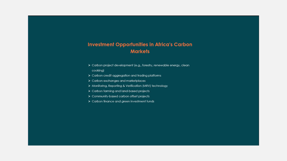Africa’s carbon market potential is growing, with exciting opportunities in: