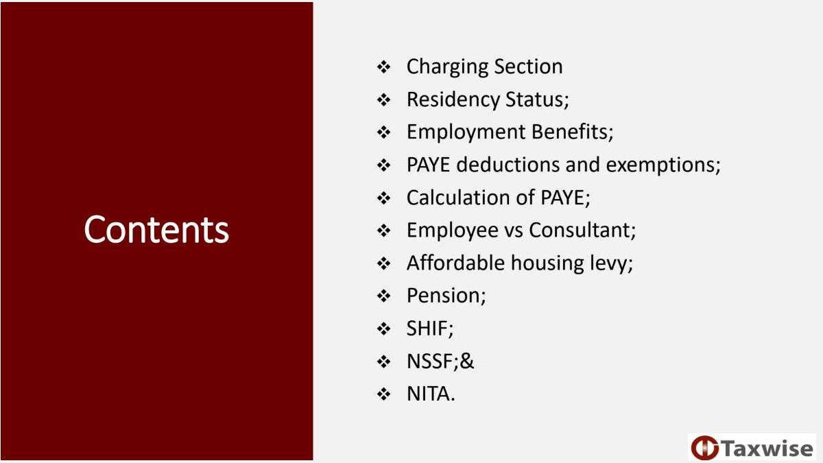 In our webinar session in partnership with Taxwise Africa Consulting LLP, we explored the latest changes in payroll taxation and what they mean for your business. Our expert speakers, Sharon B. and Moureen Nyatichi M., provided a deep dive into key updates introduced under the Tax Law (Amendment) Act 2024 and how they impact payroll compliance, employer obligations, and employee benefits.