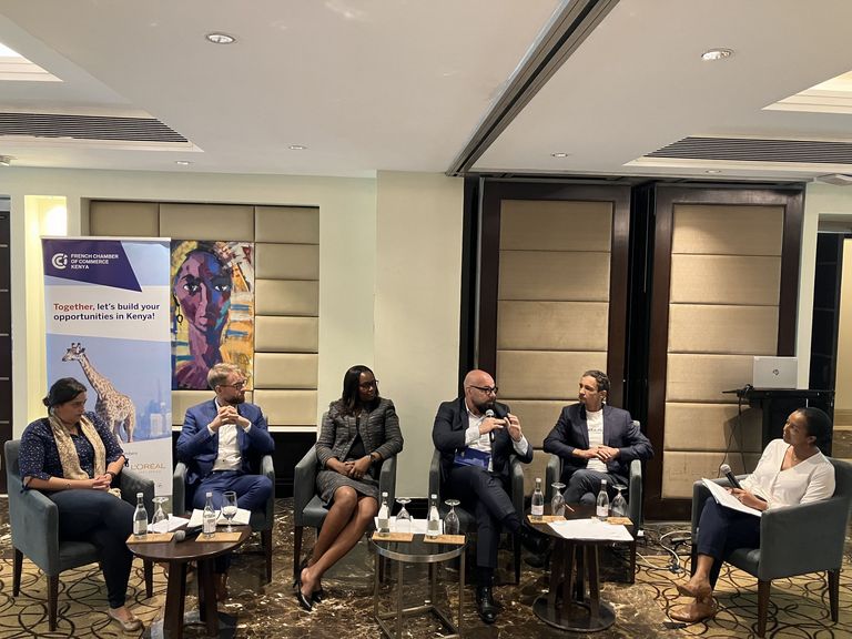 French Embassy's Economic Department presentation on Healthcare Infrastructures in E.A, followed by a panel discussion led by Serawit Bruck-Landais.